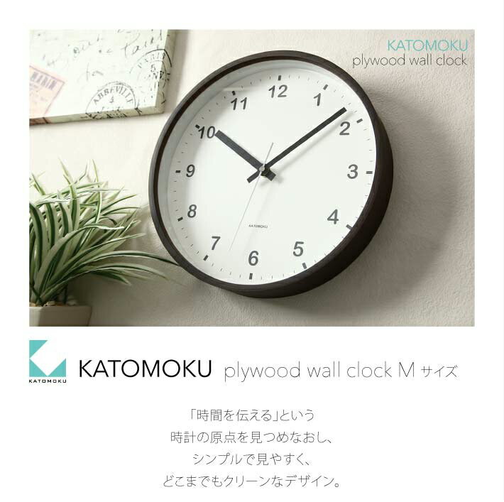 商品説明品 番km-35Mサイズ Φ252×50mm重 量500g材 質 シナベニヤ、ガラス、MDF 色ブラウン 仕 様スイープムーブメント(連続秒針)付属品取扱説明書、保証書、単3電池、壁掛け用木ネジKATOMOKU plywood clock ブラウン M size「時間を伝える」という時計の原点を見つめなおし、シンプルで見やすい、どこまでもクリーンなデザイン。